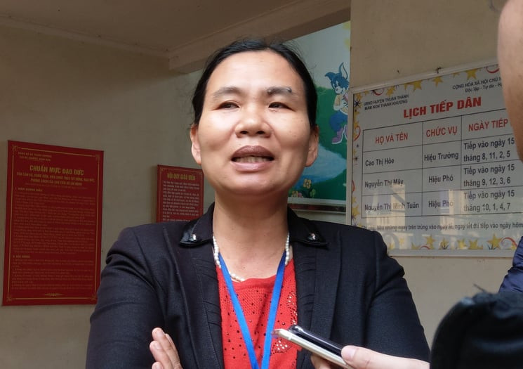 Bà Nguyễn Thị Mây, Phó Hiệu trưởng trường mầm non Thanh Khương khẳng định "học sinh ăn gì, cô giáo ăn nấy, chỉ có cách chế biến khác nhau".