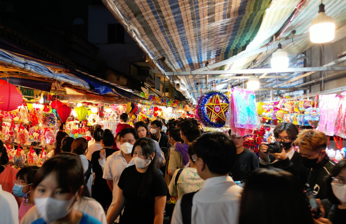 Phố lồng đèn ở TP.HCM nhộn nhịp người đi chơi Trung thu.