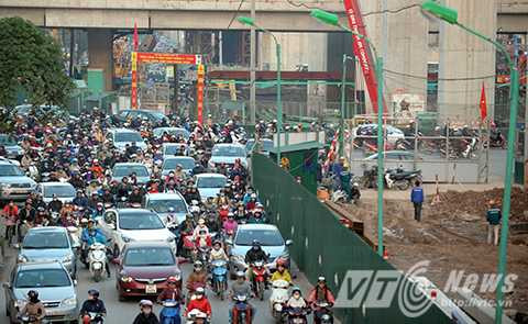 Mặc dù nhiều lực lượng chức năng của TP Hà Nội đã đồng loạt triển khai các biện pháp để chống ùn tắc, nhưng những ngày cận Tết Nguyên đán, nhiều tuyến phố vẫn rơi vào tình trạng ùn ứ nghiêm trọng. Dòng phương tiện chen chân từng centimet, thậm chí một số khu vực giao thông rơi vào tình trạng tê liệt.