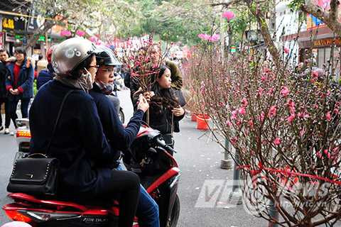 | Người dân dừng lại mua hàng hóa cũng là nguyên nhân khiến nhiều tuyến phố ùn tắc ngày giáp Tết |