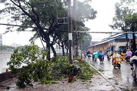| Cây xanh trên các tuyến đường bị ngã đổ do giông lốc |
