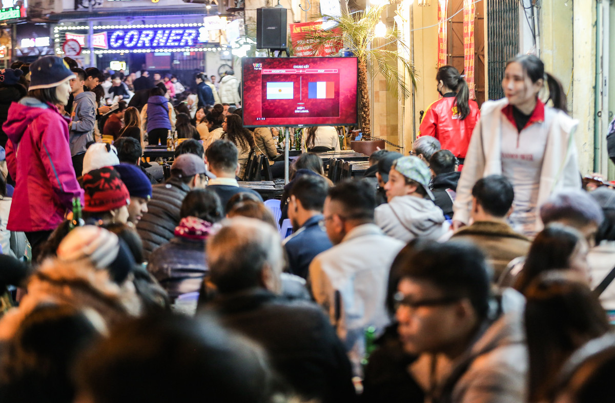 22h tối 18/12, trận chung kết World Cup 2022 giữa đội tuyển Argentina vs Pháp diễn ra. Đây là trận đấu được mong chờ nhất của người hâm mộ môn thể thao vua sau 1 tháng giải đấu "khai còi". Các hàng quán ở phố Tạ Hiện đầu tư màn hình lớn, thu hút người hâm mộ đến thưởng thức ẩm thực, nâng ly cổ vũ cho những cầu thủ và đội bóng mình yêu thích.