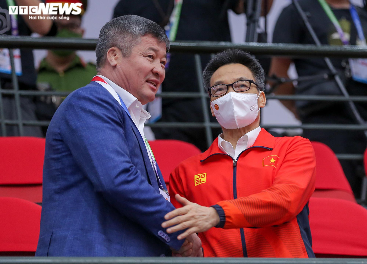 Phó Thủ tướng Vũ Đức Đam đến cổ vũ các VĐV thi đấu môn vật. (Ảnh: Trần Nhung)