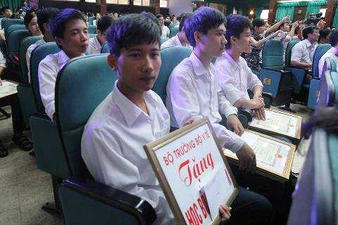 | Chàng thủ khoa nghèo Nguyễn Hữu Tiến cũng nhận được học bổng do Bộ trưởng Y tế trao tặng (Ảnh: Minh Đức) |