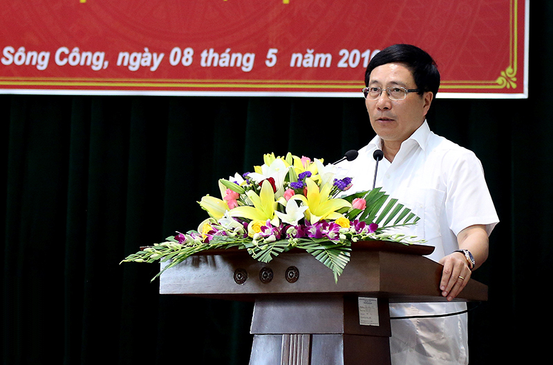 Phát biểu trước cử tri TP Sông Công, Phó Thủ tướng Phạm Bình Minh nhấn mạnh những nhiệm vụ trọng tâm trong giai đoạn hiện nay như xây dựng và hoàn thiện thể chế, chính sách trong bối cảnh đất nước hội nhập sâu rộng.