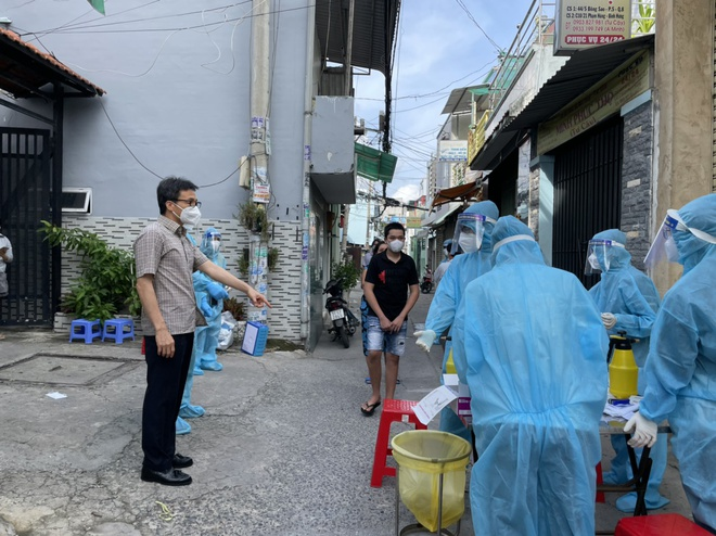 Phó thủ tướng Vũ Đức Đam kiểm tra công tác lấy mẫu xét nghiệm tại một khu dân cư.