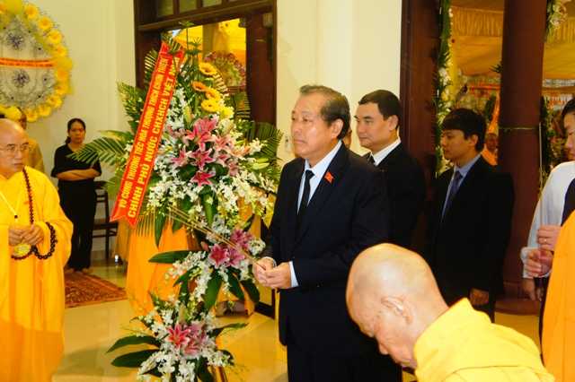 Sáng 13/11 Phó thủ tướng thường trực chính phủ Trương Hòa Bình đã đến viếng cố Hòa thượng Thích Chơn Thiện.