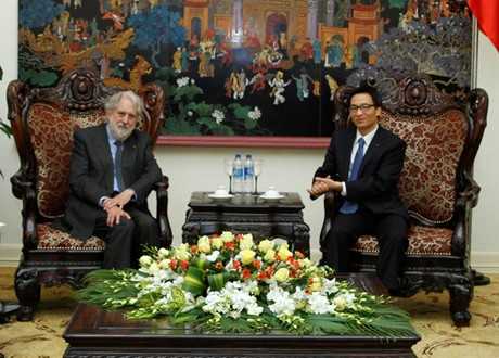 | Phó Thủ tướng Vũ Đức Đam tiếp Đặc phái viên Thủ tướng Vương quốc Anh, Huân tước David Terence Puttnam, chiều 26/1. Ảnh: VGP/Đình Nam |
