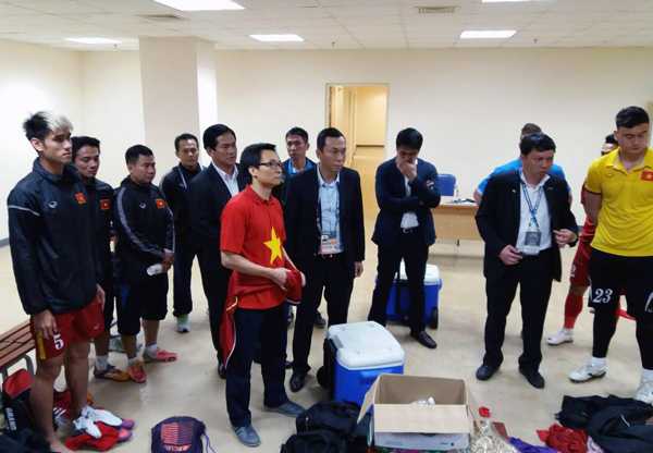 Phó Thủ tướng Vũ Đức Đam sau khi kết thúc trận đã biểu dương tinh thần của các tuyển thủ