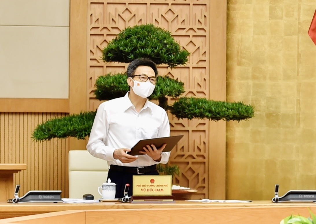 Phó Thủ tướng Vũ Đức Đam phát biểu Hội nghị trực tuyến toàn quốc phòng chống COVID-19. (Ảnh: VGP)