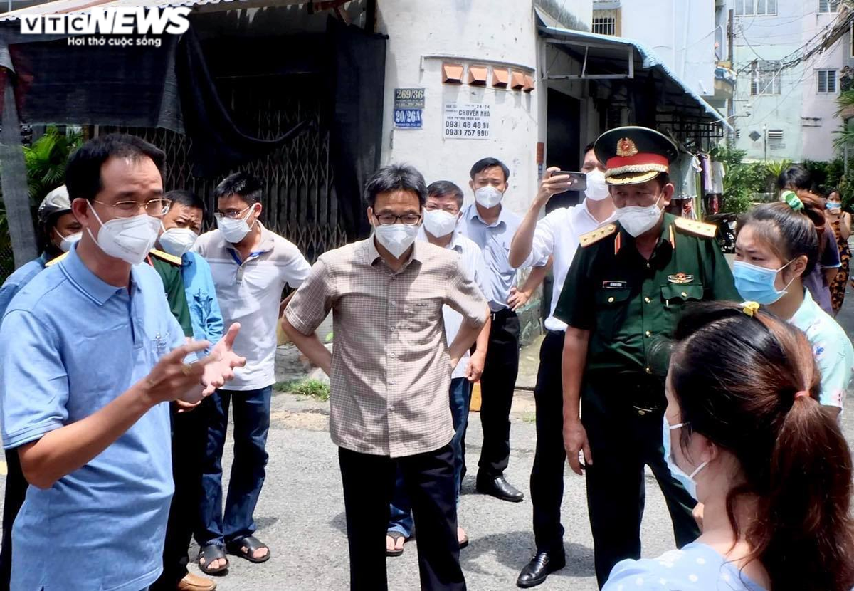 Trong buổi kiểm tra công tác phòng chống dịch COVID-19 của TP.HCM vào sáng 2/9, Phó Thủ tướng Vũ Đức Đam và Thượng tướng Võ Minh Lương - Thứ trưởng Bộ Quốc phòng, Tổ trưởng Tổ Công tác đặc biệt của Chính phủ thực hiện công tác phòng, chống dịch COVID-19 - đã gặp gỡ, thăm hỏi một số người dân sống trong các khu nhà trọ.