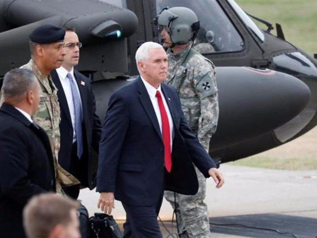 Đứng cách biên giới Triều Tiên 60 m, Phó Tổng thống Mỹ khẳng định, tất cả các lựa chọn của Mỹ về vấn đề Triều Tiên đã được được đặt trên bàn.