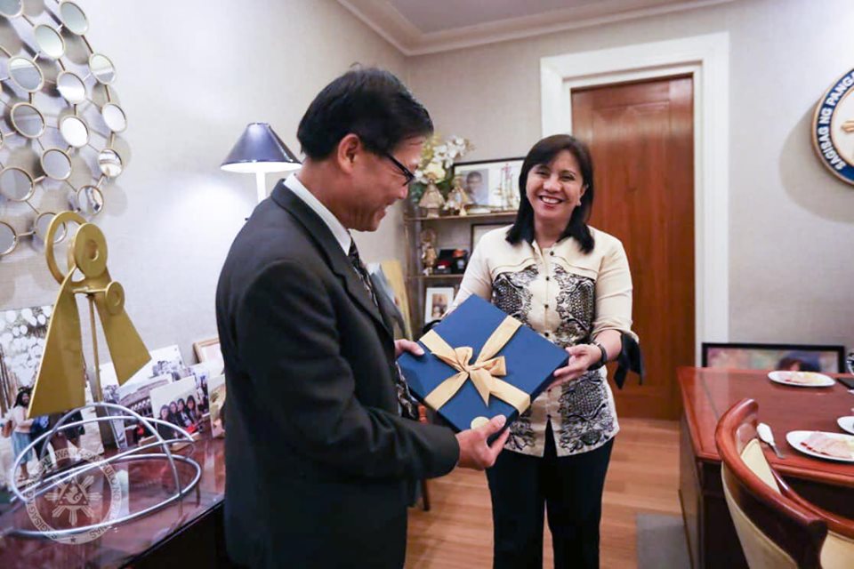 Phó Tổng thống Leni Robredo tiếp Đại sứ Việt Nam tại Philippines Lý Quốc Tuấn tại văn phòng. (Ảnh: FBNV)