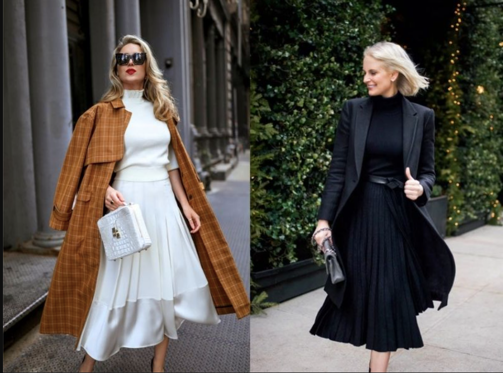 Đặc biệt, xu hướng này khuyến khích các mẫu chân váy midi có chi tiết xếp li, vải satin, hoặc lụa để tạo thêm sự bồng bềnh và nữ tính. Một đôi giày cao gót mũi nhọn hoặc boots cao cổ sẽ tôn dáng và giúp bộ trang phục thêm phần hoàn hảo.