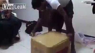 (VTC News) - Người đàn ông dùng băng dính quấn kín kiện hàng cực nhanh và chuyên nghiệp nhưng liệu có cần thiết phải thế ko?