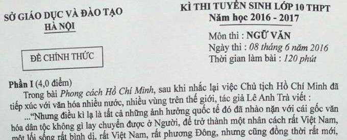 Đề thi môn Ngữ văn vào lớp 10 ở Hà Nội sáng 8/6: