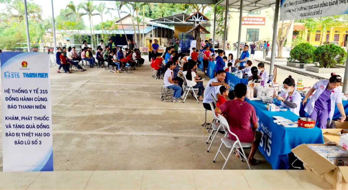 Hệ Thống Y Tế 315 thông qua báo Thanh Niên trao tặng 1 tỷ đồng và khám phát thuốc thiết yếu với tổng trị giá 100 triệu đồng cho bà con bị thiệt hại do bão lũ số 3 năm 2024.