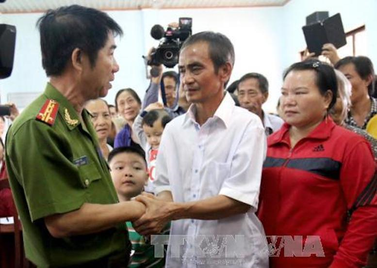 Buổi xin lỗi công khai ông Huỳnh Văn Nén bị ngồi tù oan vào cuối năm 2015 (Ảnh: TTXVN)