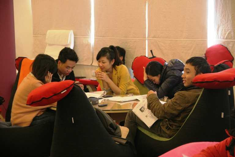 Khi triển khai hệ thống phòng học này chúng tôi đã phải nghiên cứu rất kỹ kiến trúc, nó phải rất sinh động và được thay đổi liên tục phù hợp với các bạn trẻ. Chúng tôi phải đi nghiên cứu tâm lý các bạn trẻ rất nhiều. Ví dụ các bạn sinh viên ngồi trên thảm mô hình giống như các quán trà mà sinh viên rất thích, hệ thống ngồi salon rất thoải mái giống như ở gia đình, hệ thống bàn giống như trên giảng đường, thực sự đây là khu vực cho các em học theo mô hình ở giảng đường nhưng sinh động hơn.