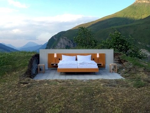 Khách sạn Null Stern ở Thụy Sĩ ấn tượng với kiểu kiến trúc không giống ai. Bởi khách sạn này không hề có tường xung quanh cũng như mái nhà giống các khách sạn khác. Khách sạn nằm giữa núi An Pơ lộng gió của Thụy Sĩ với một chiếc giường sạch sẽ. Khách sạn nằm ở độ cao 180m so với mặt nước biển