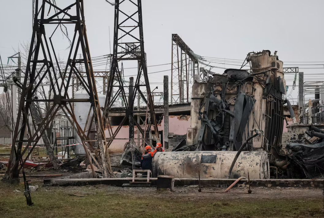 Một trạm biến áp cao thế của Ukraine bị hư hại sau cuộc tấn công của Nga. (Ảnh: Reuters)