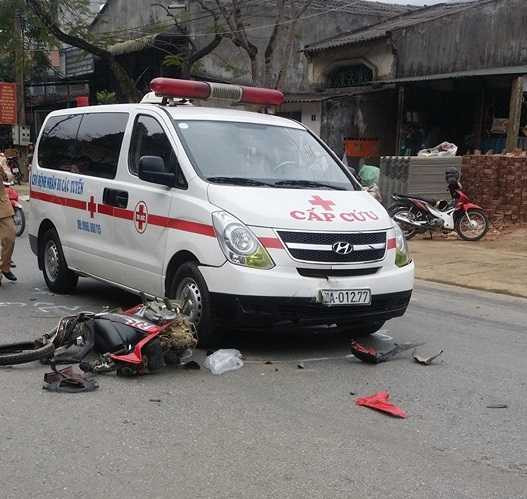 Hậu quả, nam thanh niên bị thương nặng được đi cấp cứu nhưng đã tử vong sau đó. Tại hiện trường, chiếc xe máy nằm ở gần đầu xe cấp cứu, biến dạng hoàn toàn.