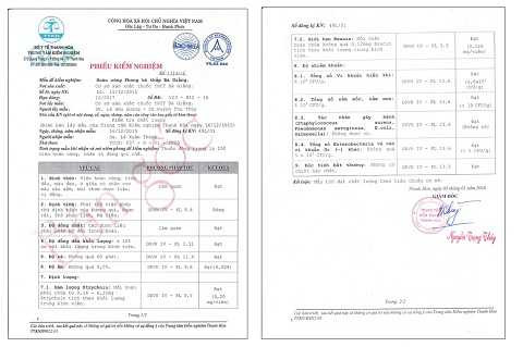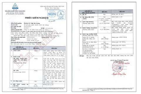 I.2. Phiếu kiểm nghiệm của Trung tâm Kiểm Nghiệm Thanh Hoá