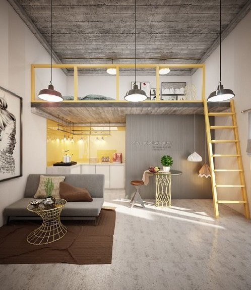 Diện tích hạn chế nên những căn hộ này luôn được lựa chọn gác xép đưa không gian nghỉ ngơi lên trên, diện tích bên dưới dành cho bếp, khu vệ sinh và tủ đựng đồ.