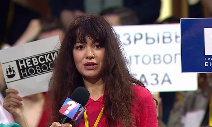 Phóng viên Alisa Yarovskaya tại cuộc họp báo cuối năm của Putin ngày 19/12 tại Moskva. Ảnh: BBC.
