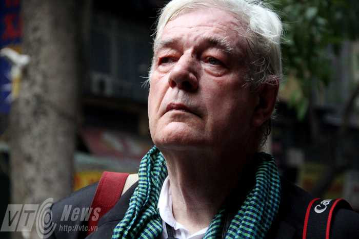 | Phóng viên ảnh Tim Page xúc động hướng vào nhà tang lễ quốc gia số 5 Trần Thánh Tông (Ảnh: Phạm Thịnh) |