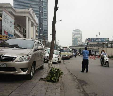| Các phương tiện đỗ lẫn chiểm vỉa hè trước cửa Nhà hàng Queen Bee |