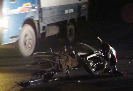 Do trời tối, không chú ý quan sát, chiếc xe máy đã đâm thẳng vào xe tải mang BKS 30U – 1702 chạy theo hướng đô thị Ecopark rẽ sang đường.