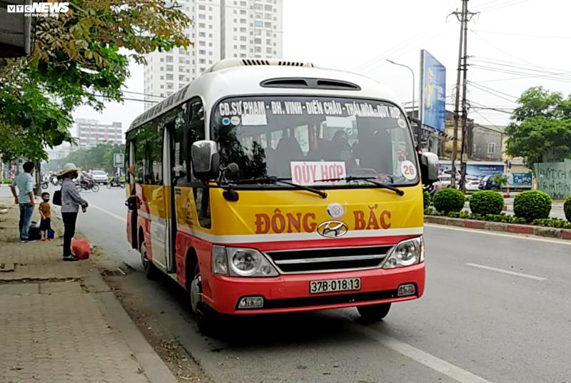 Theo quan sát của PV VTC News, đến 17h ngày 30/3 tại đường Mai Hắc Đế, TP Vinh (Nghệ An), nhiều xe buýt Đông Bắc như xe các xe 37B-018.13, 37B – 020.63; 37B-020.58... vẫn chở đầy hành khách, thậm chí có người còn không đeo khẩu trang theo quy định.