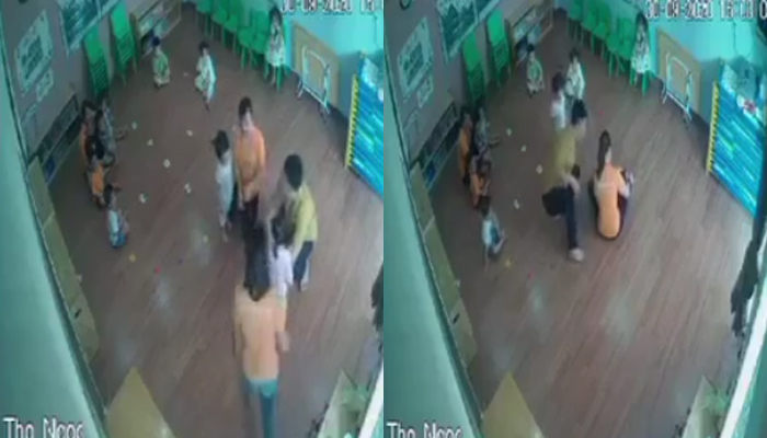 Clip: Người đàn ông giật tóc, tát trẻ mầm non trước mặt cô giáo