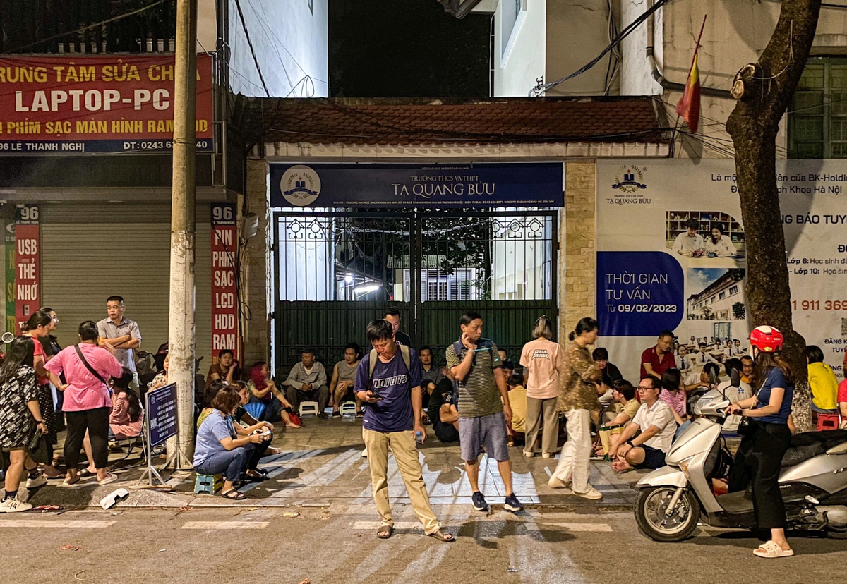 Phụ huynh xếp hàng xuyên đêm trước cổng trường Tạ Quang Bửu.