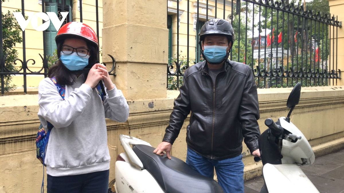 Anh Vũ Nhật Tân (Kim Ngưu, Hà Nội) có con đang theo học tại một trường THCS ở Hà Nội cho hay, sau khi nhà trường có kế hoạch cho các con được đi học trở lại, anh thường xuyên sắp xếp công việc đưa, đón con gái tới trường và về nhà. Học sinh đi học trở lại được 2 tuần thì hôm nay là buổi thứ 3 anh đưa đón con, do trong lớp có F0, con gái anh phải ở nhà học online và theo dõi sức khỏe.