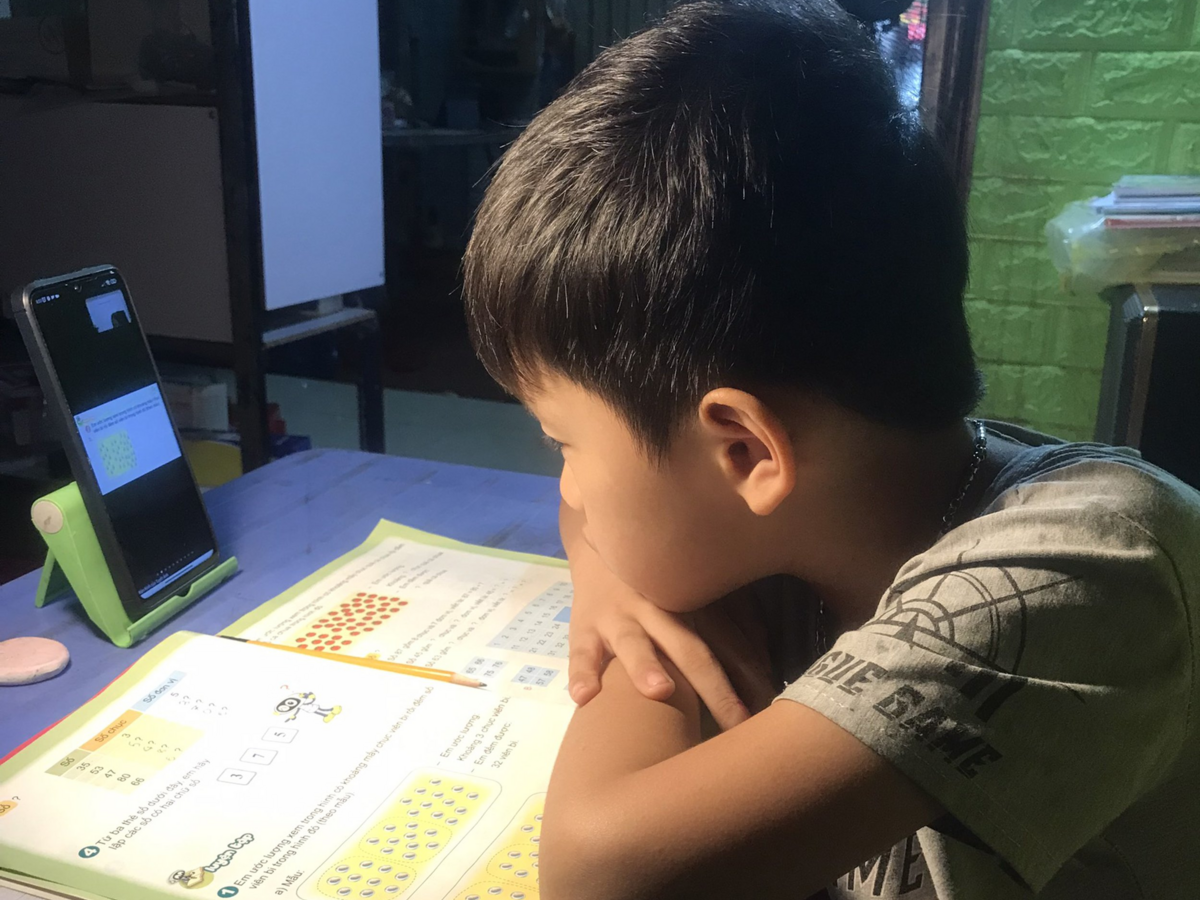 Con trai chị Thu Giang rất mong ngóng đi học trở lại: Ảnh: T.G.