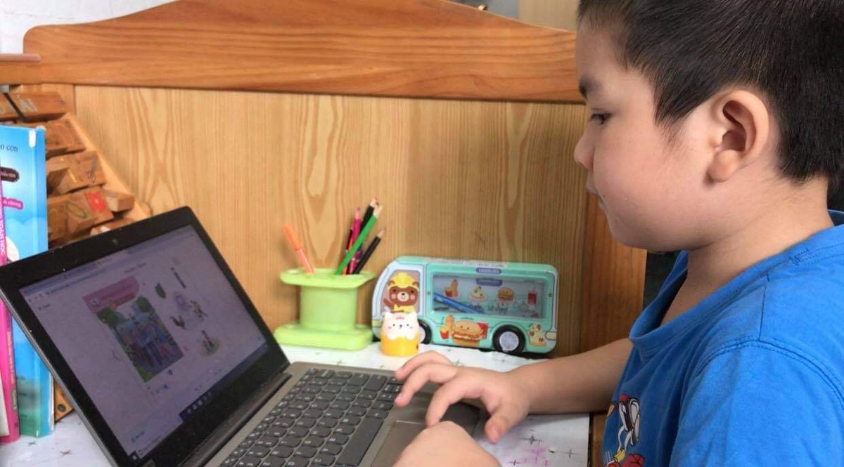 Học sinh lớp 1 tại tỉnh Bà Rịa - Vũng Tàu đang học online với cô giáo.