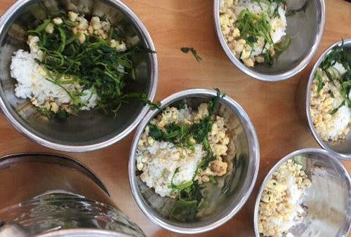 Suất ăn của học sinh trường Tiểu học Nam Trung Yên được ví như bát cám lợn.