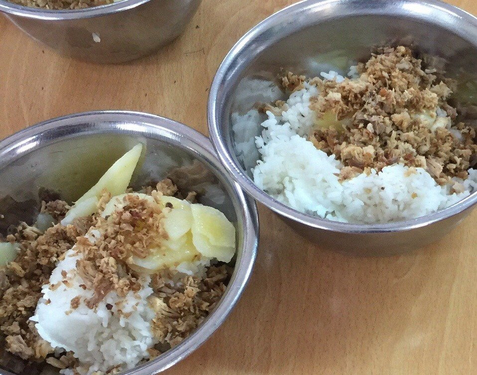 Suất ăn của học sinh trường Tiểu học Nam Trung Yên được ví như bát cám lợn.