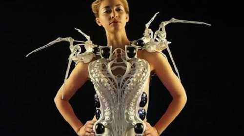 Chiếc váy cới tên gọi Spider Dress, được tạo ra từ máy in 3D, với thiết kế bên ngoài như những chiếc chân nhện bao phủ lên người mặc.
