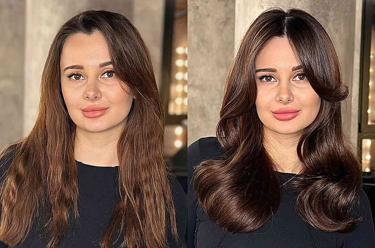 Tóc uốn sóng nhẹ là một lựa chọn hoàn hảo để làm mềm các đường nét của khuôn mặt, đặc biệt đối với những người có trán cao và rộng. Những lọn tóc uốn sóng nhẹ không chỉ tạo độ bồng bềnh cho mái tóc mà còn giúp khuôn mặt trông đầy đặn và hài hòa hơn. Kiểu tóc này có thể được kết hợp với mái ngang hoặc mái xéo, giúp che bớt phần trán và làm cho khuôn mặt trông mềm mại hơn. Tóc uốn sóng nhẹ sẽ giúp bạn tạo cảm giác cân đối và thanh thoát hơn.