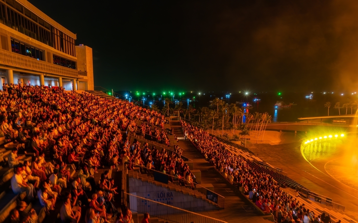 Đến gần 21h mỗi ngày, mọi ngả đường dẫn đến sân khấu của show diễn do người Pháp dàn dựng Nụ hôn của biển cả - Kiss of The Sea sẽ luôn tắc cứng khi có đến hàng ngàn du khách đổ về.