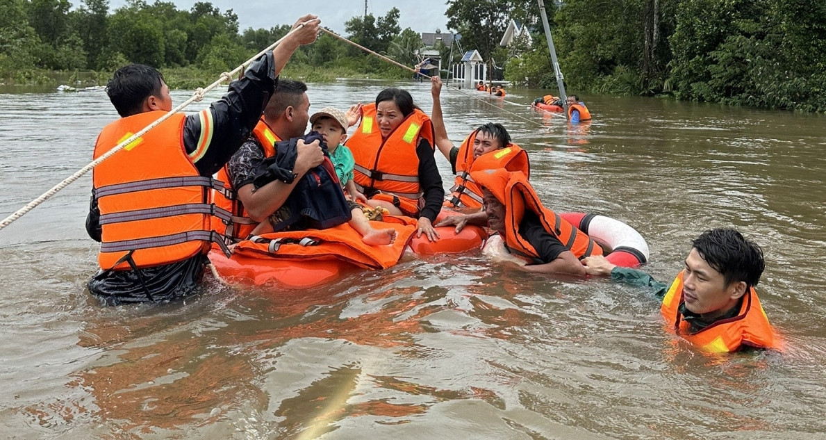 Lực lượng công an, biên phòng và chính quyền địa phương tổ chức ứng cứu, sơ tán người già và trẻ nhỏ đến nơi an toàn.