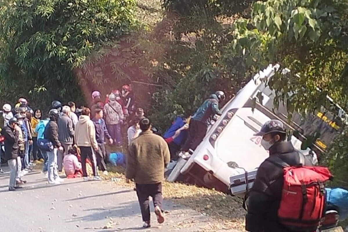 Theo thông tin ban đầu, khoảng 13h chiều 29/1, ô tô khách loại 47 chỗ ngồi bị lật tại khu vực Đèo Cón (Thu Cúc, Tân Sơn, Phú Thọ).