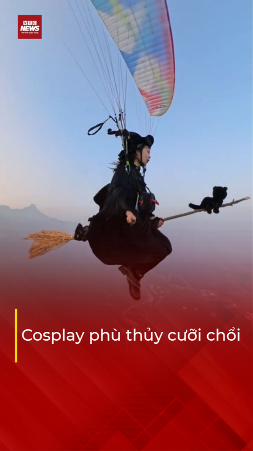 Độc đáo màn cosplay phù thủy cưỡi chổi trên bầu trời Trung Quốc