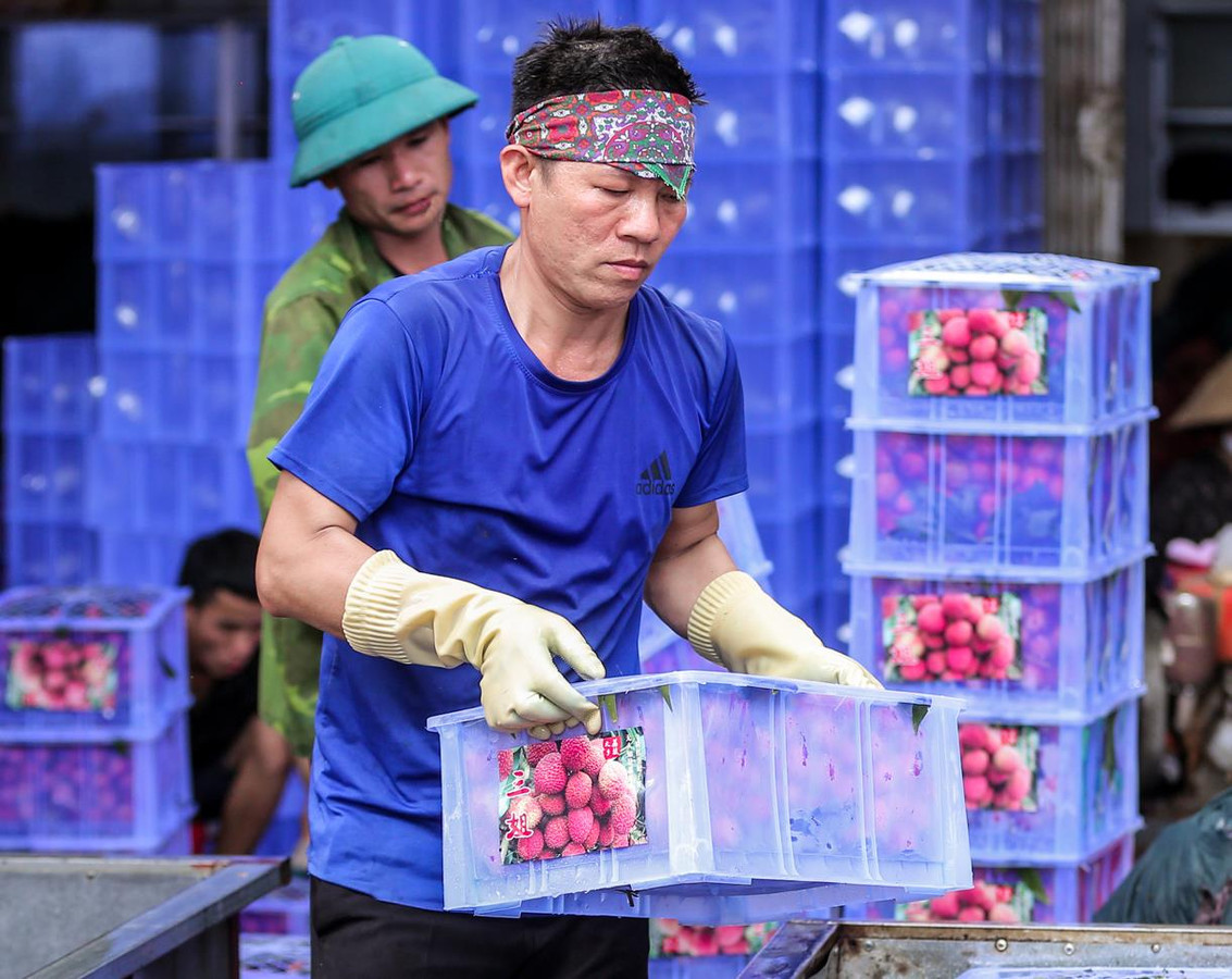 Anh Hoàng Văn Hải cho biết, hiện gia đình anh có 3 điểm cân vải thiều tại xã Phì Điền, huyện Lục Ngạn. "Mỗi ngày, gia đình tôi thu mua khoảng 30-35 tấn vải thiều. Mỗi điểm cân của gia đình tôi luôn có 20-30 lao động, hoạt động từ 6h cho đến 18h. Các lao động tập trung phân loại, đóng gói vải thiều vào thùng xốp để tiện vận chuyển đi tiêu thụ tại các địa phương khác cũng như xuất khẩu đi Trung Quốc", anh Hải cho hay.
