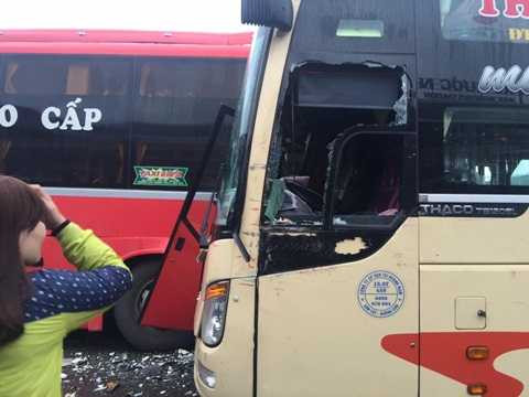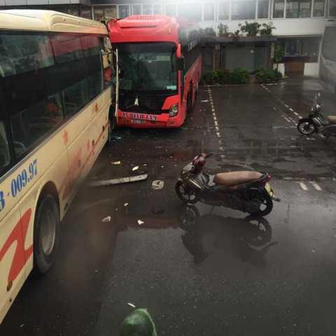 Chưa dừng lại, chiếc xe này tiếp tục đâm vào một xe giường nằm mang biển kiểm soát tỉnh Nghệ An khiến chiếc xe bị đẩy trượt, đâm vào cửa nhà vệ sinh của bến xe.