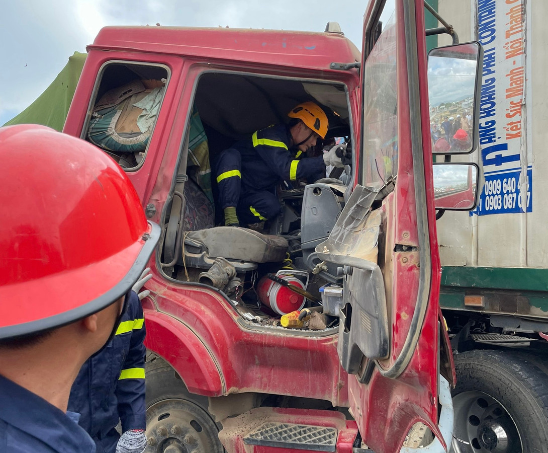Vụ tai nạn khiến tài xế Huỳnh Đức Tâm bị thương, mắc kẹt trong ca bin.