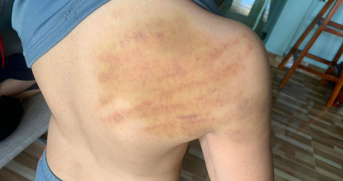 Em T.T.A bị bà Vân đánh bầm lưng do không làm được bài tập.